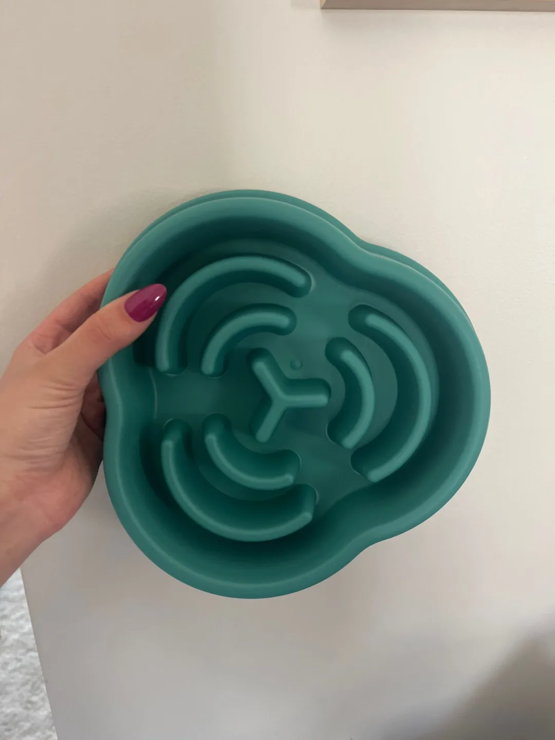 Тарілочка з якісного пластику, достатньо велика та з низу є прорезинені вставки, тому не сильно ковзає. Доставка була протягом двох тижнів.